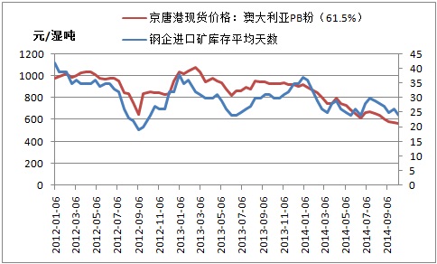 圖三:鋼企進口礦庫存天數與京唐港澳粉價格走勢