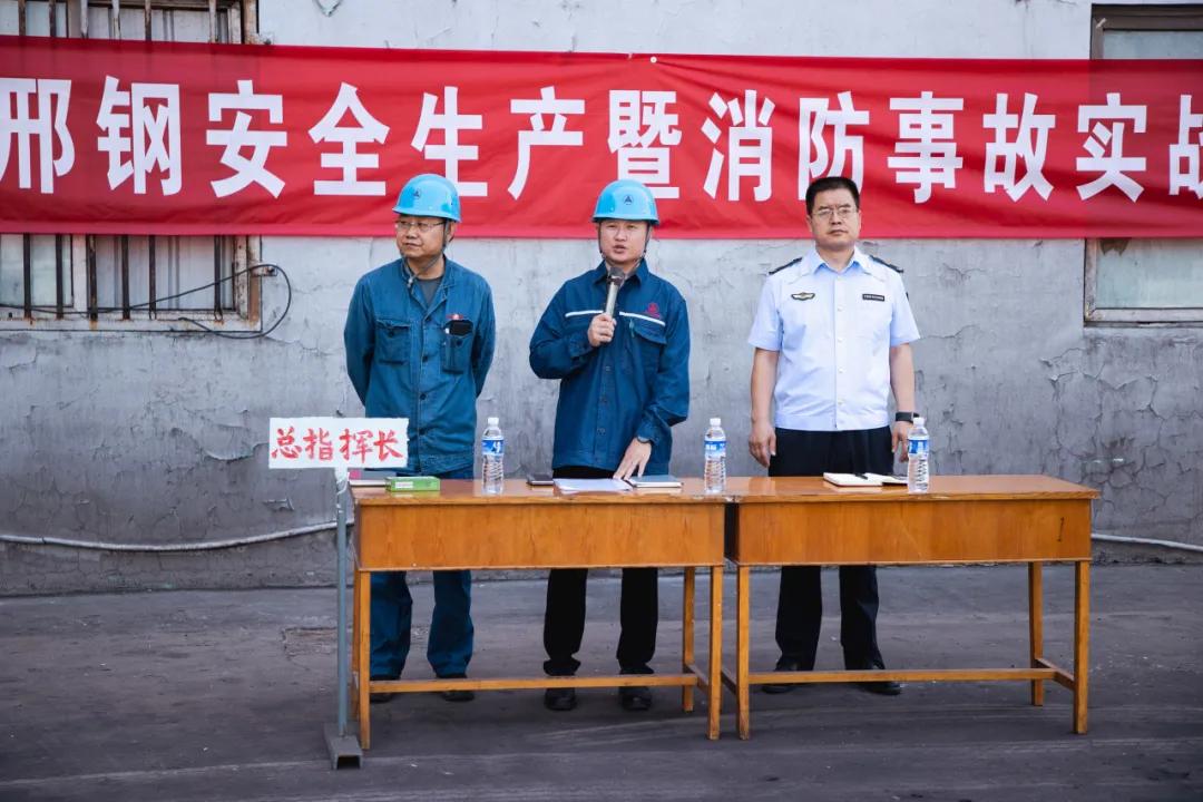 上午8點(diǎn)55分,邢鋼副總經(jīng)理李紅超宣布應(yīng)急演練正式開始。9時(shí),中控室氣體檢測(cè)報(bào)警設(shè)施顯示5#探頭報(bào)警,粗苯工檢查發(fā)現(xiàn)粗苯罐放空閥外側(cè)法門里側(cè)法蘭開裂,發(fā)生粗苯泄漏,隨即報(bào)告值班廠長,焦化廠粗苯儲(chǔ)罐事故專項(xiàng)應(yīng)急預(yù)案響應(yīng)啟動(dòng)。警報(bào)一響,應(yīng)急指揮部迅速成立,現(xiàn)場(chǎng)所有人員在指揮長的指導(dǎo)下,按照應(yīng)急預(yù)案有序開展了處置、救援等應(yīng)急程序。線材廠、煉鋼廠、煉鐵廠、質(zhì)控部等單位組織人員到現(xiàn)場(chǎng)觀摩學(xué)習(xí)。